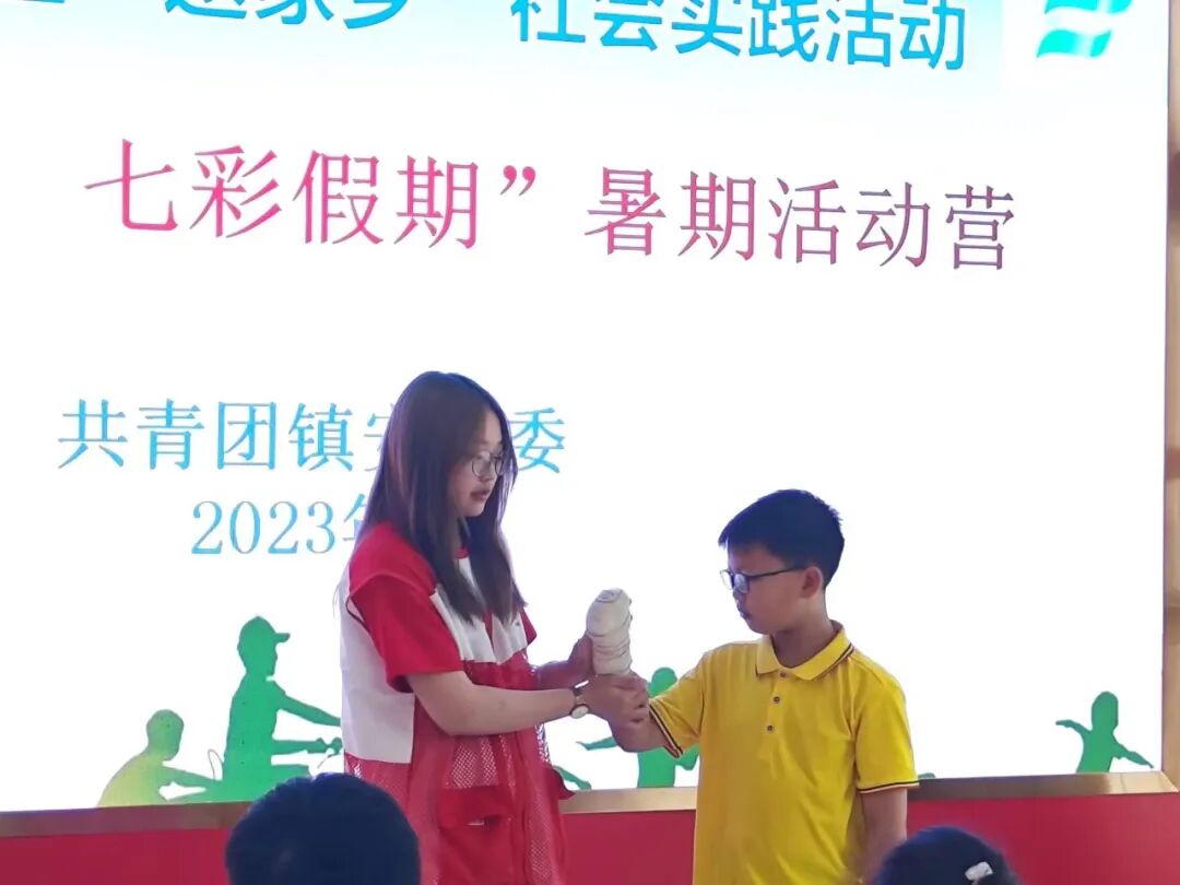 队员们向小朋友们演示了生活中比较常用的几种包扎方法,如前臂骨折包扎法,螺旋包扎法,拳击手套包扎法,重点强调了在包扎过程中的注意事项以及如何检查包扎的方法,对实际操作中的错误予以纠正。通过队员们风趣幽默的讲解和演示方式,使儿童对创伤包扎方法的认识进一步加深。学习简单的应急救护知识,有利于儿童在遇到意外时,能最大限度地降低伤