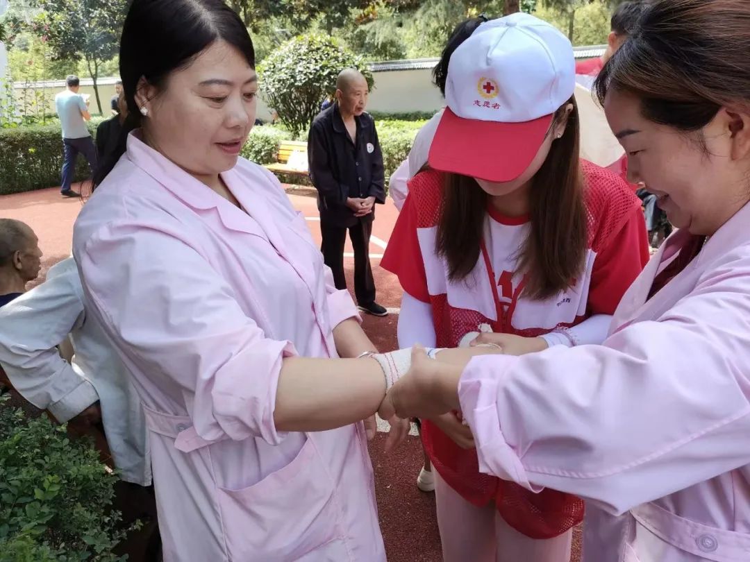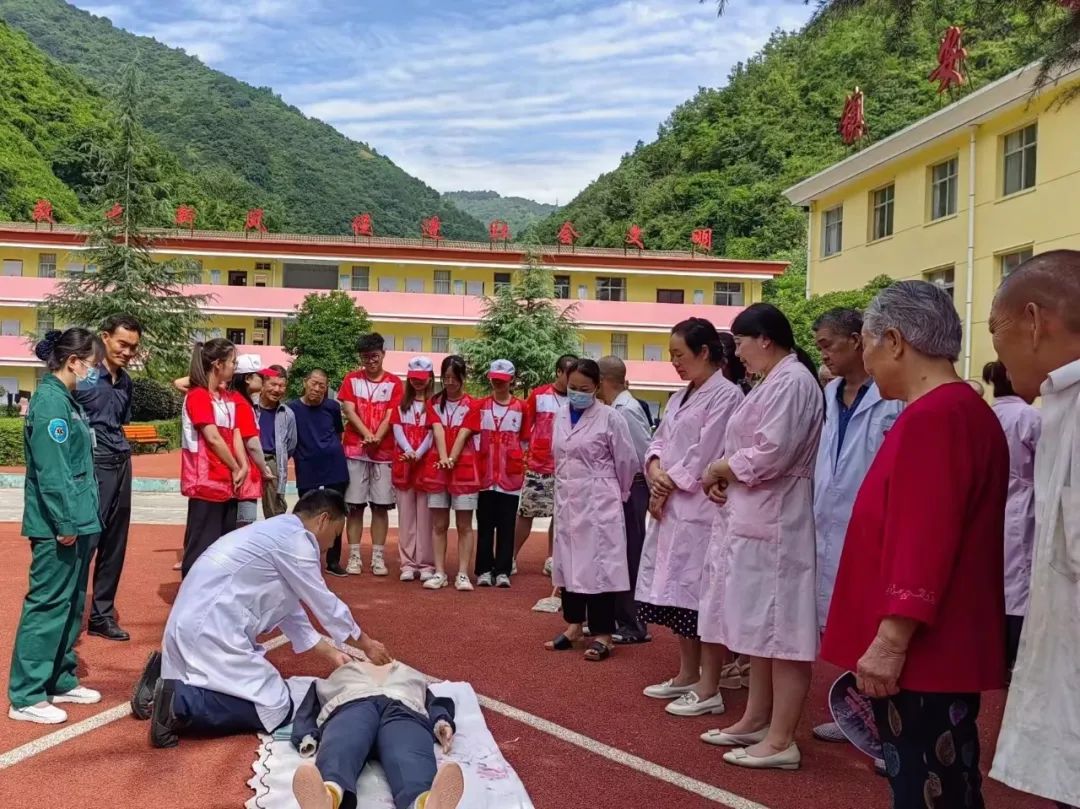 生活未必光芒万丈,但始终温暖有光。学习基础急救知识,能够更好地应对生活中发生的一些安全风险。为了加强应急救护知识的普及,2023年7月15日阳光成长服务队队员前往商洛市镇安县中心敬老院,联合镇安县医院急诊科,给敬老院护工进行心肺复苏、创伤包扎等实践技能锻炼,为老人们的生活增加了安全保障。