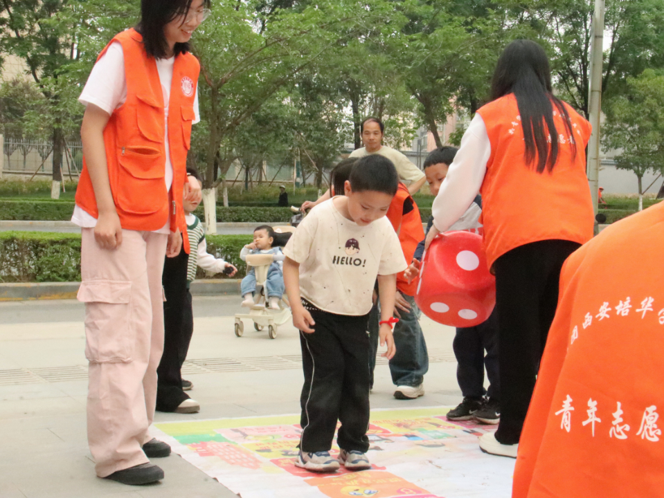 环境治理游戏环节,志愿者们分组行动。从垃圾分类的精准投递到雾霾挑战的奋力吹散,从拼图协作的智慧碰撞到飞行棋闯关的知识渗透,七大专区以趣味互动织就环境治理的生动课堂。活动现场热闹非凡。志愿者们通过游戏解码环保责任,用实践唤醒绿色自觉——这一游戏环节既是环保理念的播种机,更是社区绿色治理的催化剂。