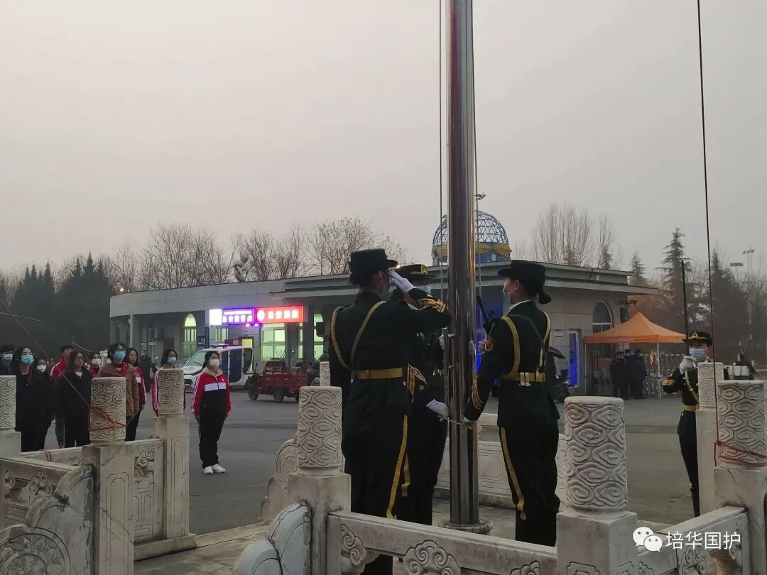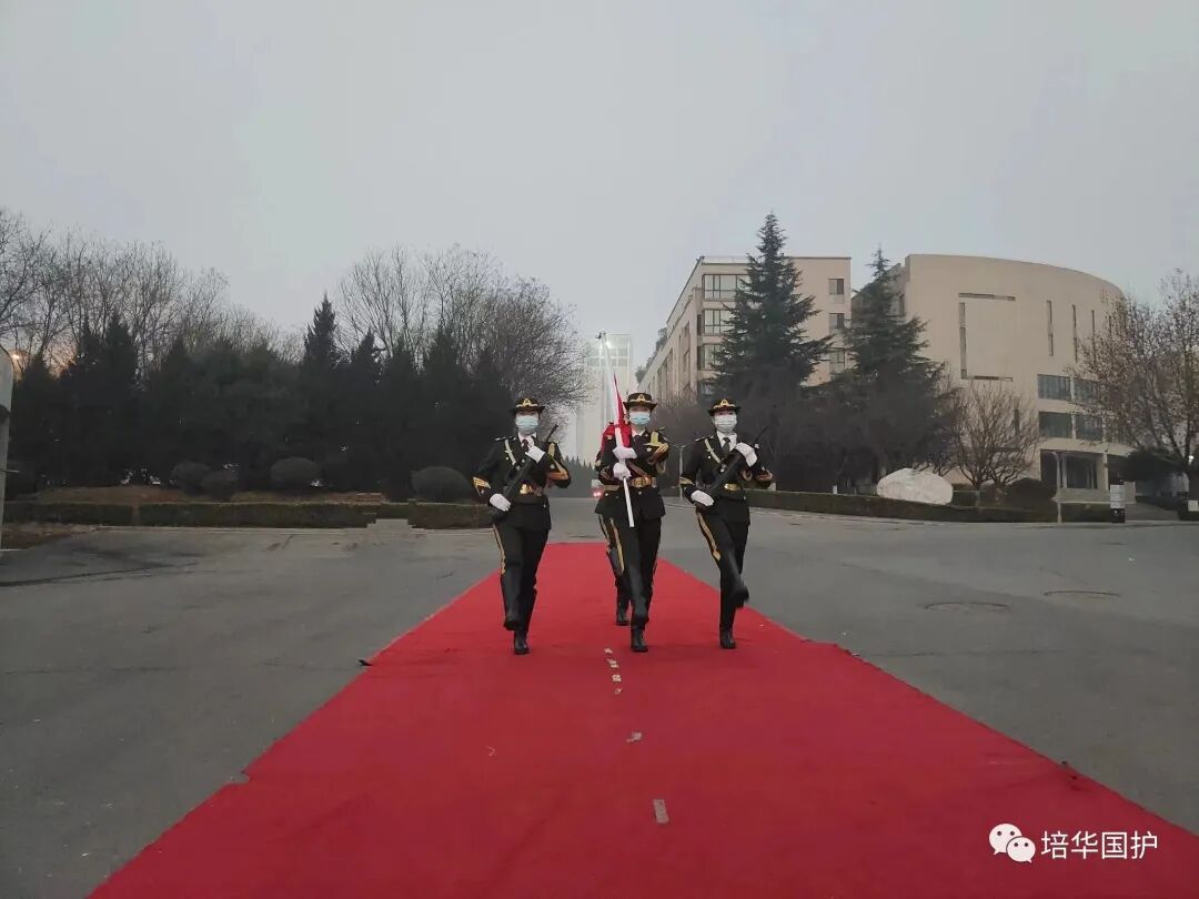 当国歌奏响,全体成员肃立,向国旗敬礼,看着冉冉升起的国旗,好似我们的希望也在飞扬。国护队员们神采奕奕,不忘初心,砥砺前行,齐赋这青春,尽绽风华。