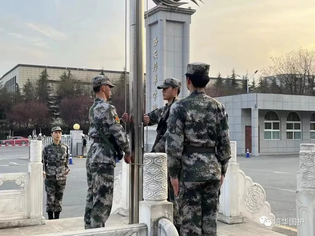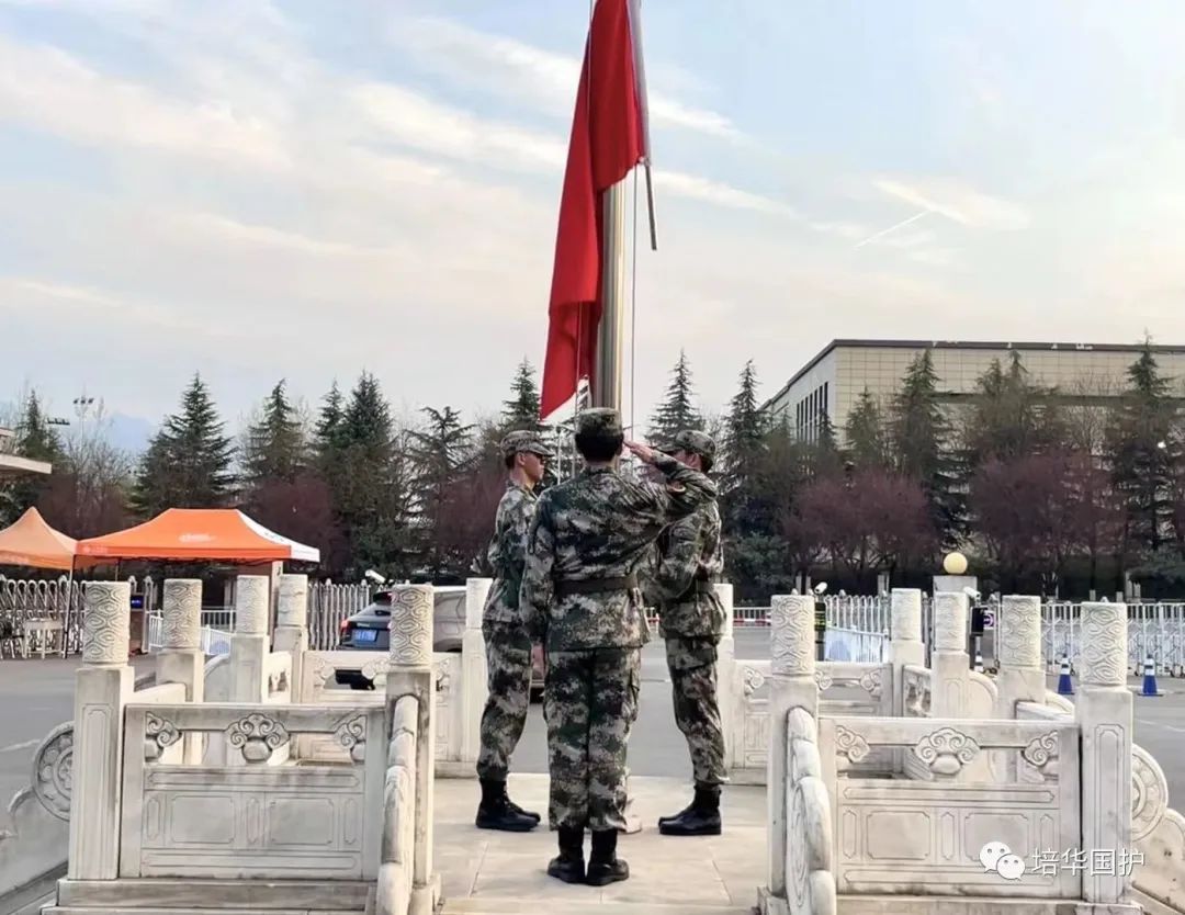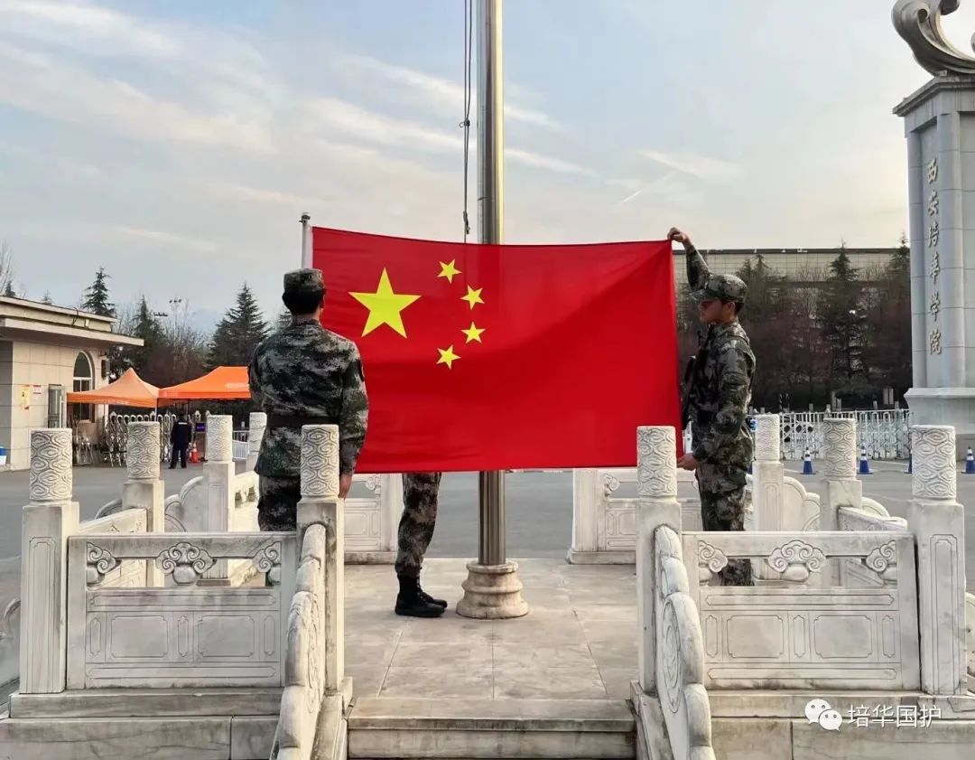 随着“敬礼”的口号声响起,旗组每一个动作都井然有序,旗台前所有队员坚定的注视着缓缓落下的国旗,饱含敬畏,饱含热情。国护队员的脚步铿锵,每一步都是时间的积累,信仰的力量。