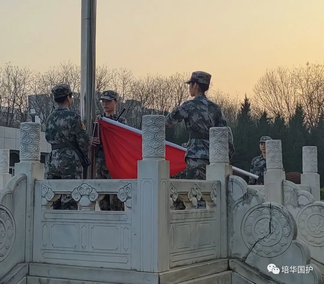 群山自有垂柳相衬,国旗自有少年相护。队员们在加入国护那一刻起,国旗就已融入他们的青春底色,南门就已经成为他们挥洒汗水的舞台。为了心中的那一抹中国红,他们总是迎朝阳而起,伴星辉而归,成为每天伴随国旗升起与落下最靓丽的一抹绿。