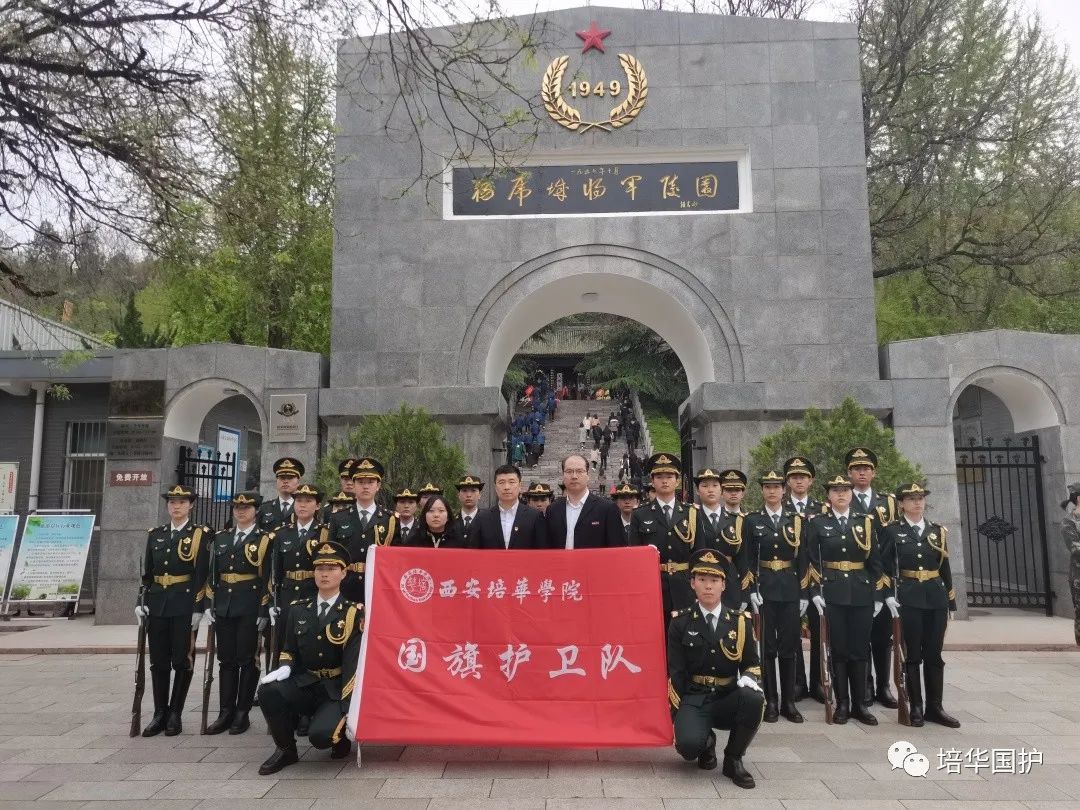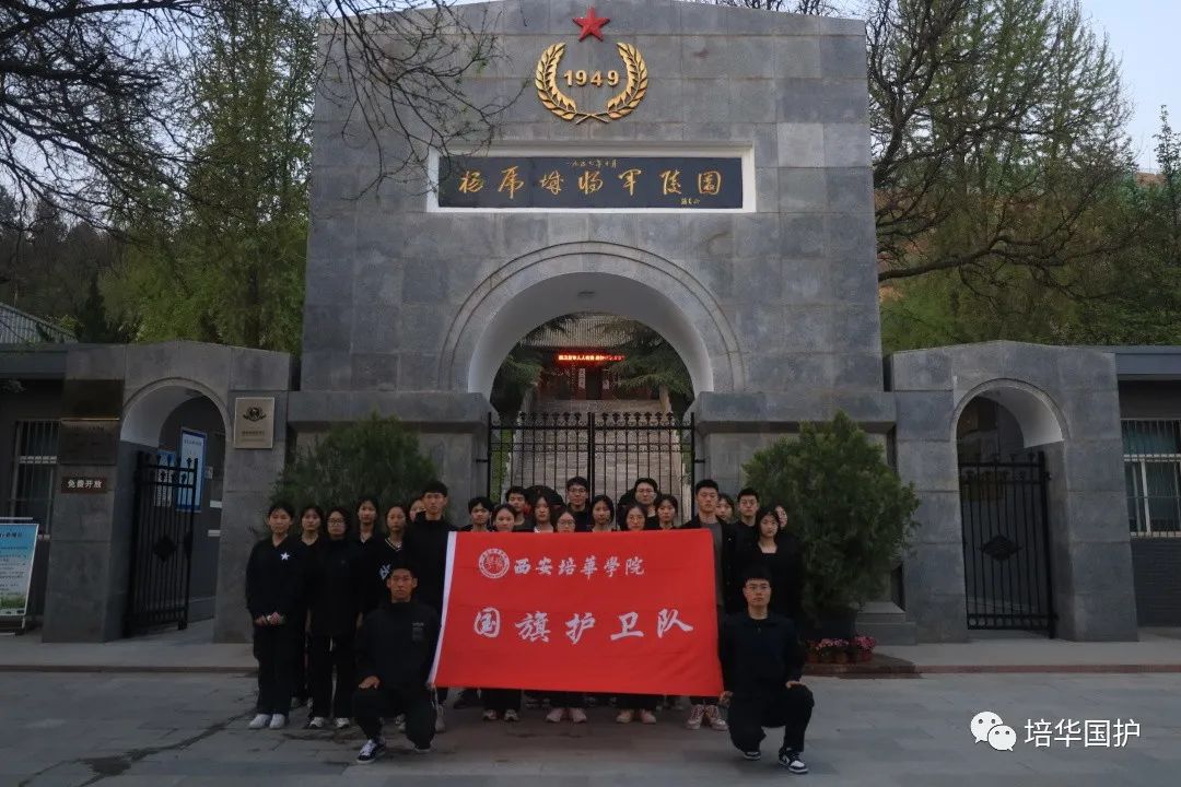 4月4日上午,在清明节到来之际,为悼念革命先烈,传承英雄精神,让青年一代继承先烈的光荣传统,弘扬民族精神,发扬先烈遗志,西安培华学院国旗护卫队参加了由团区委联合区委文明办、区教育局、区退役军人事务局、西安培华学院团委在西安市长安区杨虎城将军陵园举办的“清明祭英烈,共铸中华魂"爱国主义教育活动。