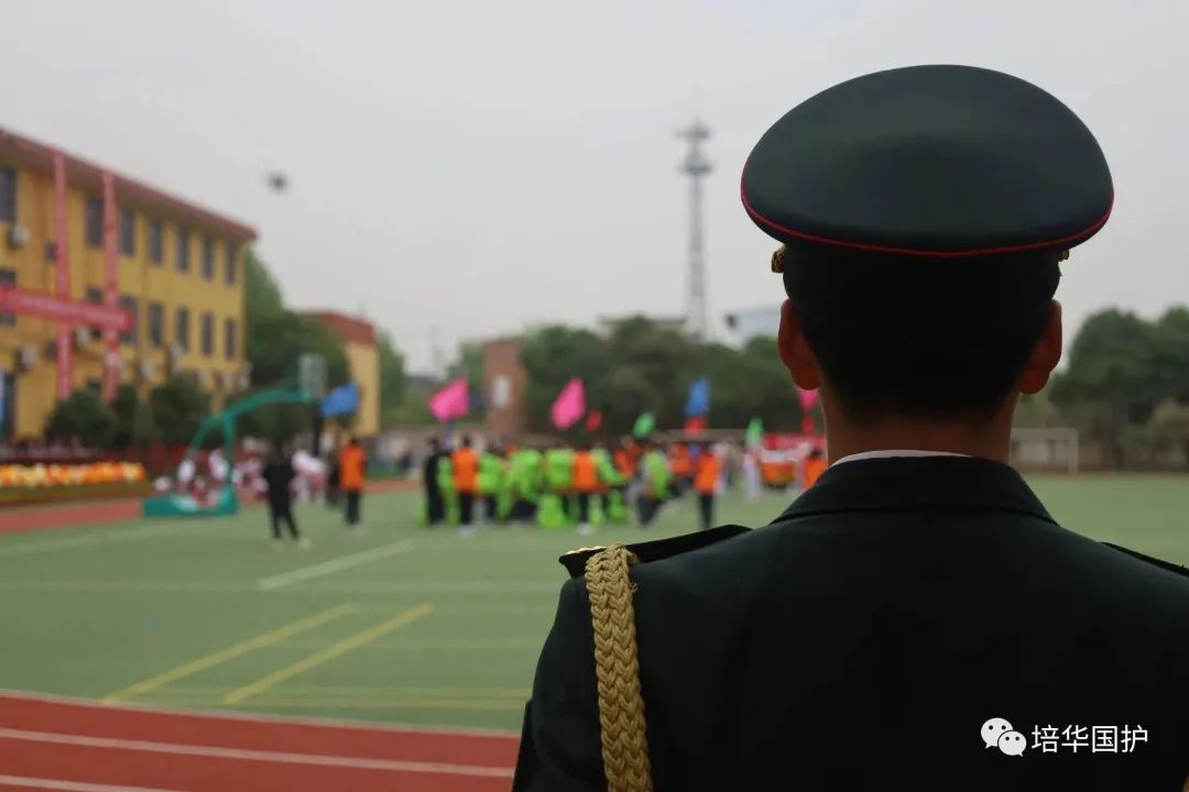 操场上,国护队员耐心带学生们学习军姿,三大步伐等动作,并为他们讲解国旗护卫队的基础知识。