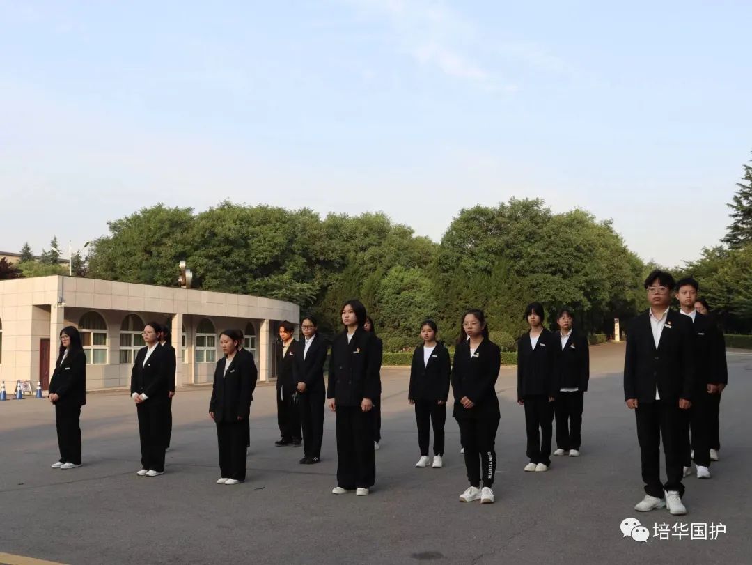 伴随着激昂的国歌,队员们护着五星红旗,迈着铿锵有力的步伐,走向升旗台。旗组配合默契,动作整齐划一,在第一缕晨光的见证下,五星红旗冉冉升起。