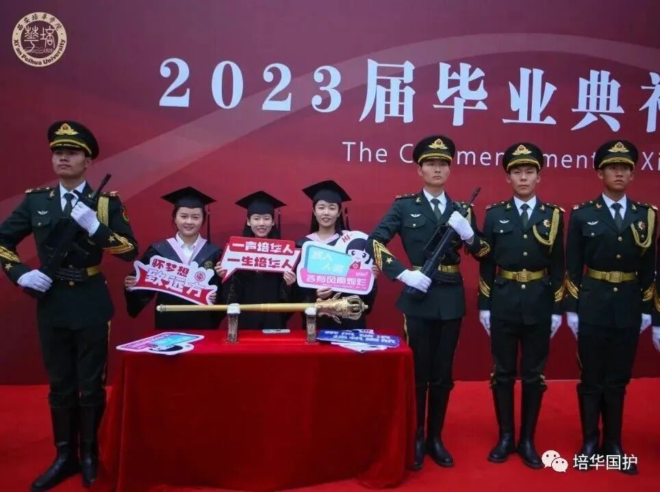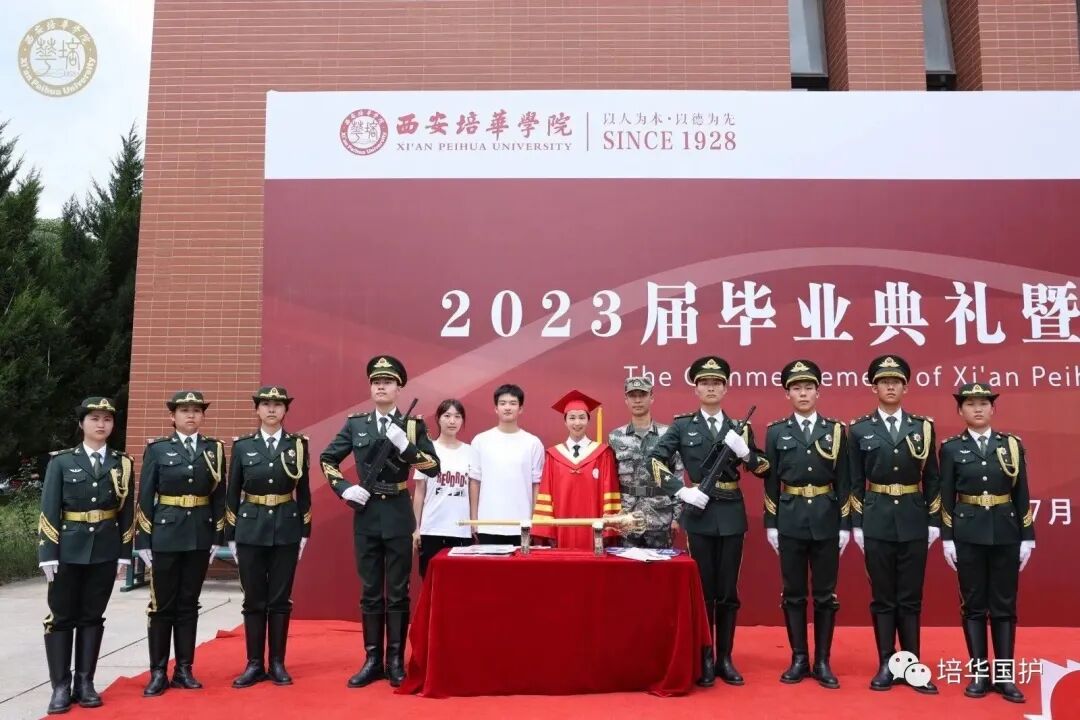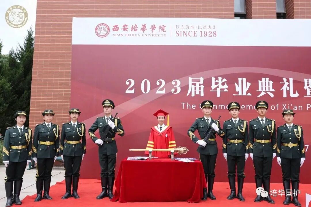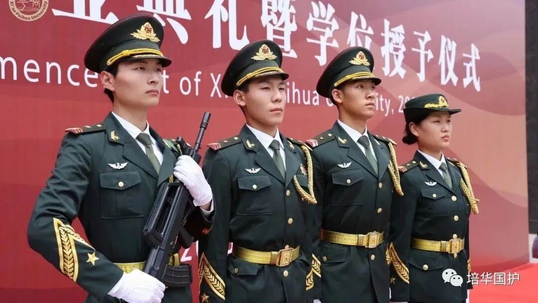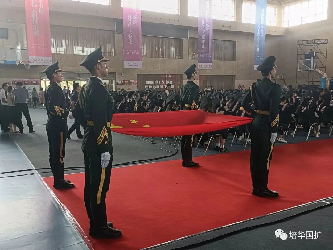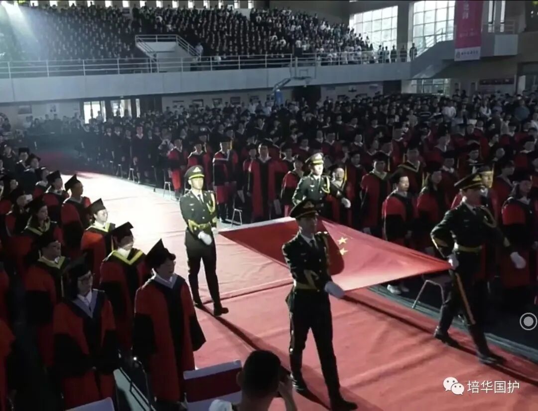 毕业典礼上,国旗护卫队队员们铿锵有力的正步今日好像多了几分柔情,坚毅的目光中多了几分不舍,未曾开口言明的祝福寄托在国旗上,随着一声“敬礼”倾泻而出。