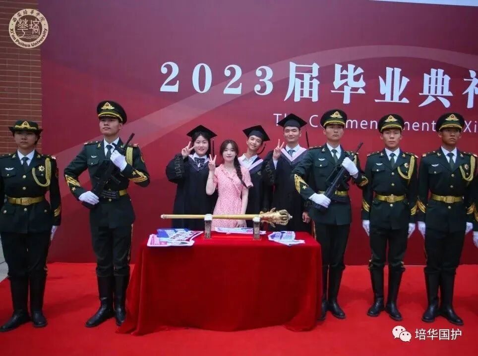 光彩夺目的权杖旁是挺拔的队员身影,他们持九五,守权杖,引得培华学子纷纷前来观看合影留念。照片上的他们喜笑颜开,眼中是对未来的期盼和对培华的不舍。