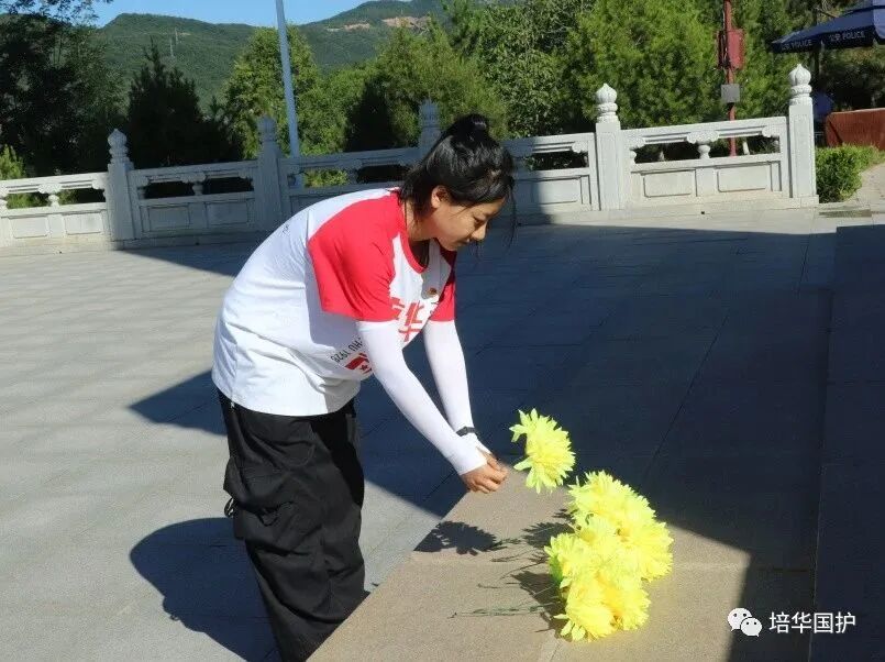 仪式开始,队员们依次上前为英雄们献上鲜花,并鞠躬致以最崇高的敬意。看着基座上栩栩如生的浮雕,往日的峥嵘岁月一帧帧浮现在队员们的眼前,不免让人心生敬意。