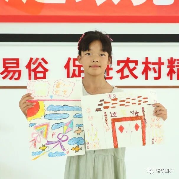 下午,实践队员带着小朋友们一起制作关于“学习党的二十大”手工绘画。让他们用手中的画笔将自己内心的所想所感描绘在一张张纸上。