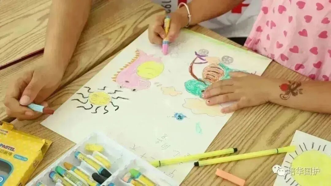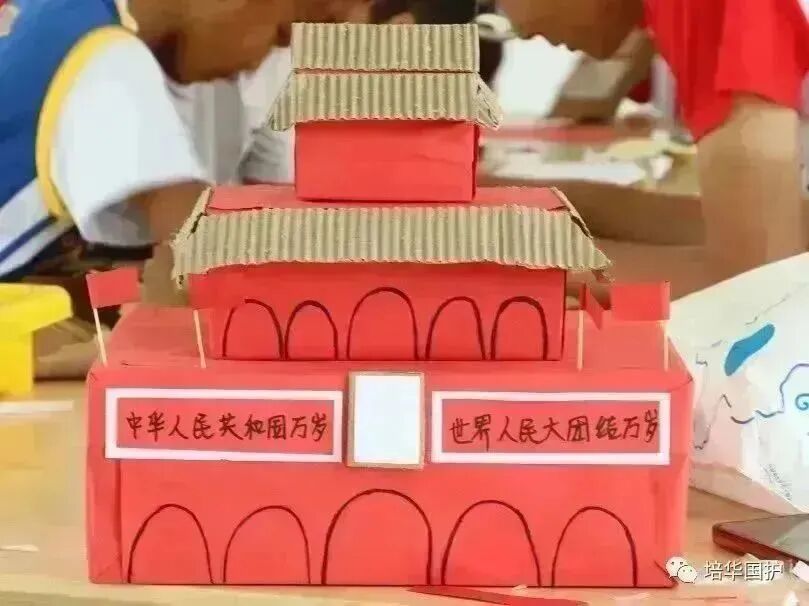 孩子们用国歌手语版来表达自己的爱国之情,随后队员带领孩子们制作了小国旗和天安门手工作品。