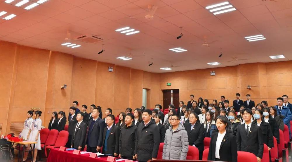 ▲党委宣传部融媒体中心综合主管吕晓东、校团委干事刘子阳为聘任干事颁发聘书