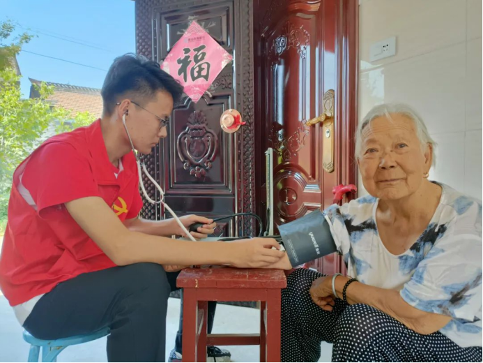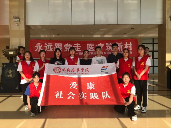 西安培华学院爱康社会实践队成立于2017年4月,由来自医学院护理学专业的10余名同学组成,实践队每月都会走进西安市长安区、雁塔区的社区中进行中医特色送健康服务,至今已历经4年,累计服务达5000余人次。2021年7月12日至27日,在医学院党委书记王平安老师、专业课教师李安琪老师、张少波老师、李萌老师、原玮老师等多名专家和老师指导和参与下,实践队员赶赴陕西省宝鸡市岐山县凤鸣镇北郭乡开展为期15天的“永远跟党走,医疗筑新村”暑期三下乡社会实践活动。主要围绕北郭乡卫生院、凤鸣区域敬老院、周原广场及附近村庄开展活动。主要社会实践服务项目涉及6个方面:血压测量、中医特色健康服务、常见疾病与多发病预防知识宣讲、进行中老年人医疗卫生知识普及情况调研、助力新冠疫苗接种保障、教授养生经络拍打操和洗手操,通过调研、走访、数据采集、分析,实践队撰写了《凤鸣镇卫生服务建设及村民中医药健康素养现状的调研报告》,覆盖人数近1000余人。同学们用多元化的实践活动和数据来帮助当地村民深入了解医疗知识,提高健康用药水平,助力乡村振兴计划和健康中国建设。