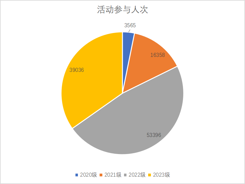 如下表所示,十月份活动参与情况中,2020级、2021级和2022级学生参与活动总人数占比99.99%,2020级学生参与总人数占比不足4%。