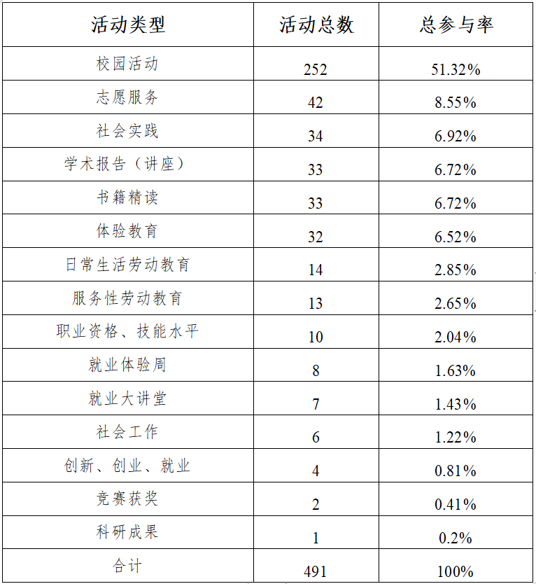 “五育并举”社会实践活动,参与总人数达到9191人,共计20319人次,其中人文与国际教育学院参与人数2732 人;会计与金融学院参与人数1954人;传媒与设计学院参与人数1895人;智能科学与工程学院参与人数1281人;医学院参与人数466人;法学院参与人数443人;体育学院参与人数420人。
