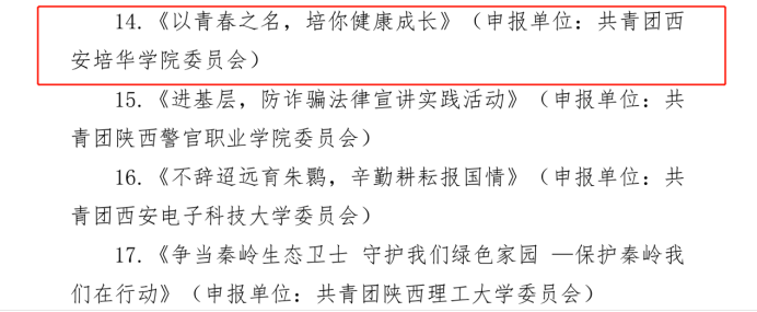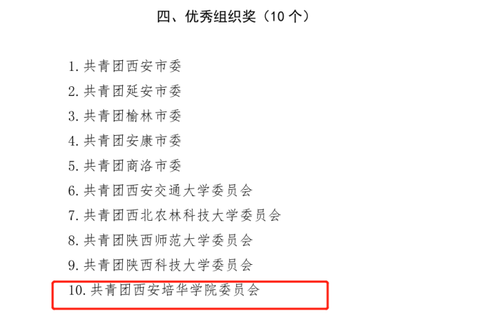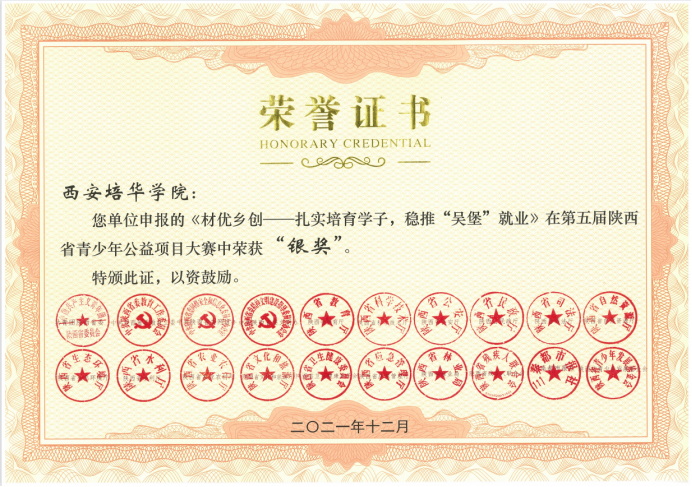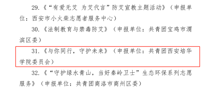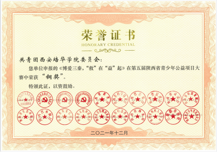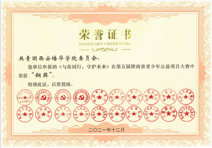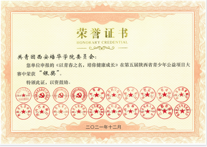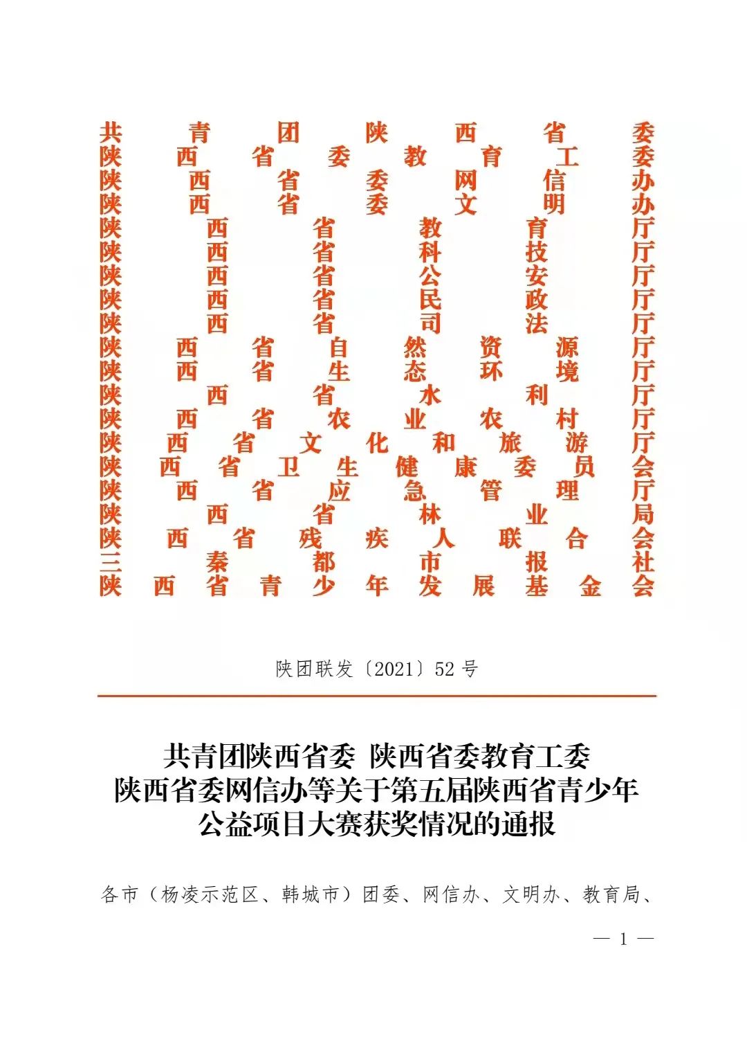 日前,第五届陕西省青少年公益项目大赛比赛结果已经揭晓。根据陕团联发(2021)52号《共青团陕西省委 陕西省委教育工委 陕西省委网信办等关于第五届陕西省青少年公益项目大赛获奖情况的通报》,由我校推荐的《材优乡创——扎实培育学子,稳推“吴堡就业”》《以青春之名,陪你健康成长》和《博爱三秦,“救”在“益”起》《与你同行,守护未来》等四个项目,分别荣获银奖2项和铜奖2项,我校团委荣获本届大赛优秀组织奖。