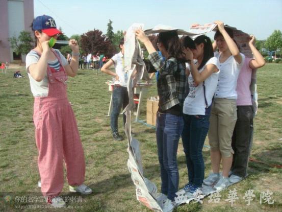 2012年5月16日下午16:00到20:00,西安培华学院学生会生活部在二号楼前的草地上组织进行了活动的游戏环节,游戏包括珠在千里、无轨电车、地雷阵和无敌风火轮。游戏即将开始,各参赛宿舍冒着烈日陆续来到游戏现场,由工作人员带领着进行游戏。游戏进行时现场热闹非凡,珠在千里笑声不断,无轨电车摔跤连连,地雷阵前尖叫笑闹,无敌风火轮破烂百出。游戏过程中团委书记王叶清带领其他老师到场观看,指导体验;姜波理事长亲临现场对本次活动给予肯定。
