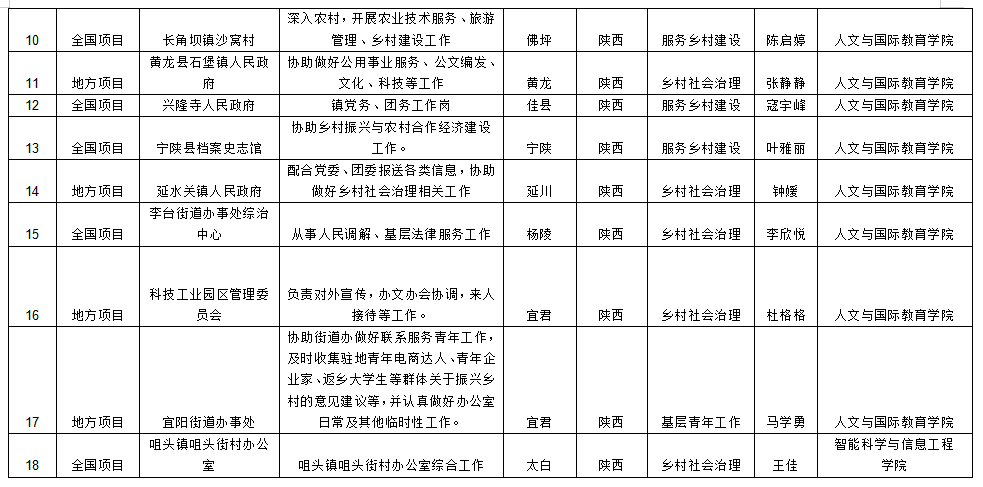 按照陕西省大学生志愿服务办公室的安排部署,根据《陕西省大学生志愿服务西部计划项目管理办公室关于 2022-2023年度陕西省西部计划志愿者招募选拔工作的通知》(陕项办发〔2022〕2号)总体要求,我校2022—2023年度西部计划招募选拔工作,本着“公正、公平、公开、择优”的选拔原则,经个人报名,学院审查,校项目办资格审核、笔试、面试、心理测评、谈话等环节考核,拟推荐张程等18名同学为我校2022-2023年度西部计划志愿者,现将选拔结果公示。