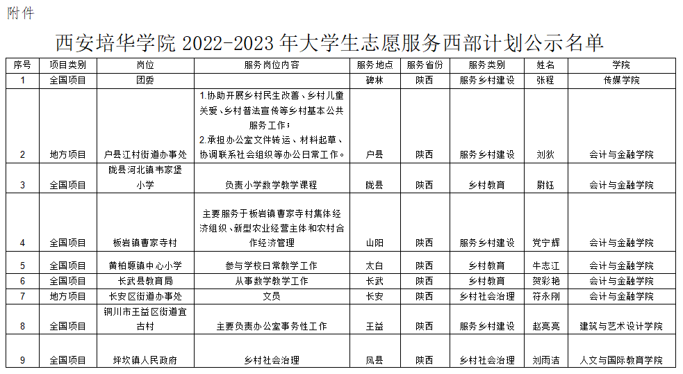 附件:西安培华学院2022-2023年大学生志愿服务西部计划公示名单