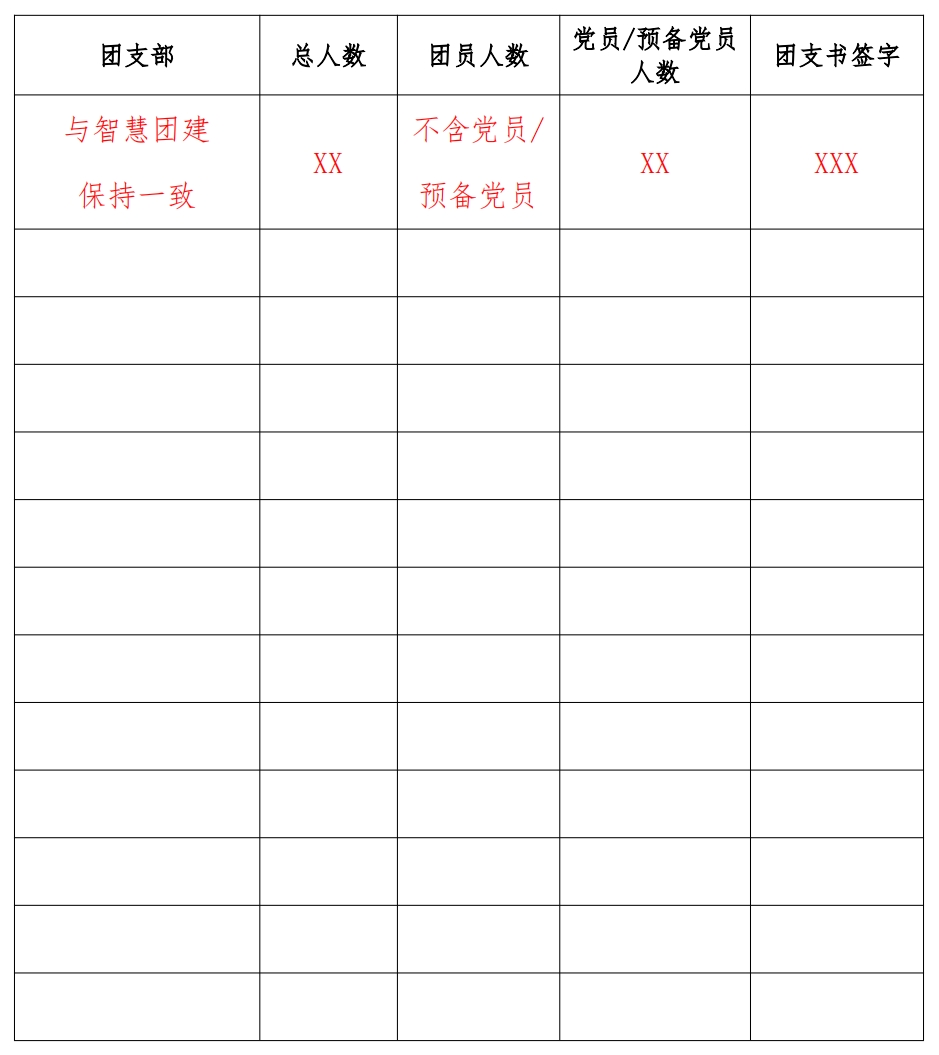 注:此表一式三份(校团委、二级学院团委、团总支各一份)