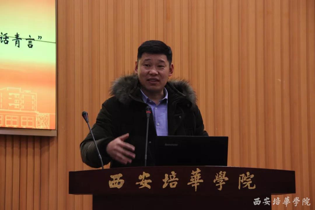 ▲校团委书记蔡亮老师发言,并带领大家学习习近平总书记7.2重要讲话精神