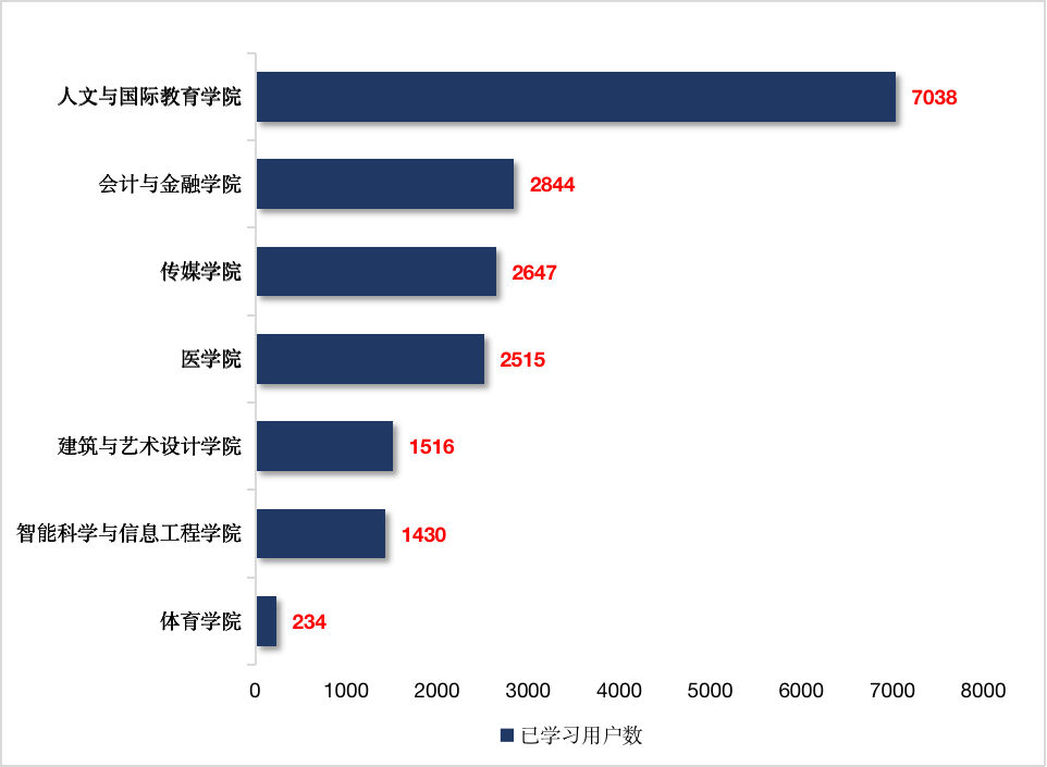 学习人数方面:人文与国际教育学院排名第一会计与金融学院传媒学院分别位于第二、三位