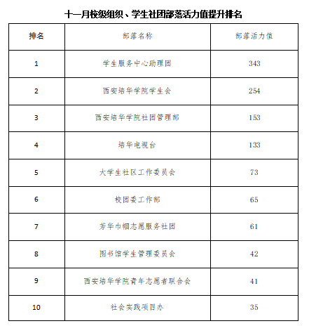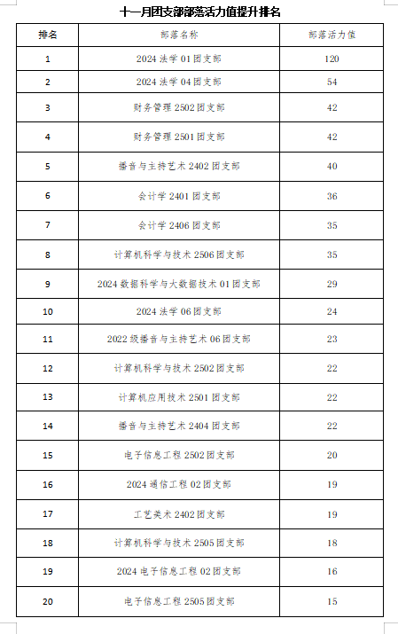 十一月团支部部落活力值提升排名