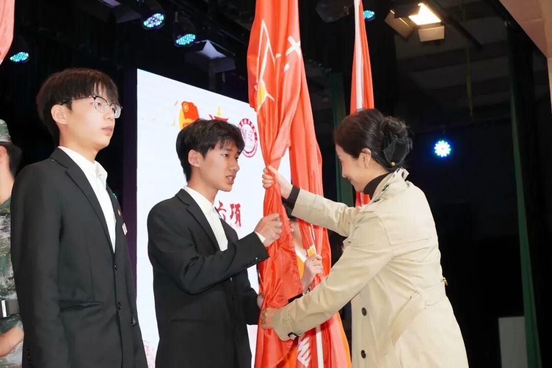 校党委副书记、副校长姚文静教授为第十九期“青马工程”暨团干部素质能力提升训练营及各主体班次授旗。鲜艳的旗帜承载着青年骨干的责任与使命,标志着第十九期青马培训正式启动。