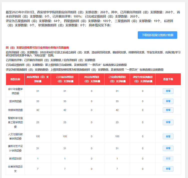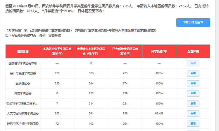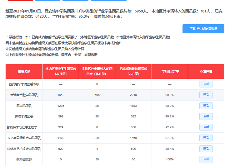 “依托网上共青团-智慧团建”积极推进共青团员管理工作规范开展。积极做好6423名2022届毕业生团组织关系办理和学社衔接工作。完成2022级新生团组织关系的转入工作组建工作,接收2022级新生团员组织关系4372人,建立新生团支部187个。