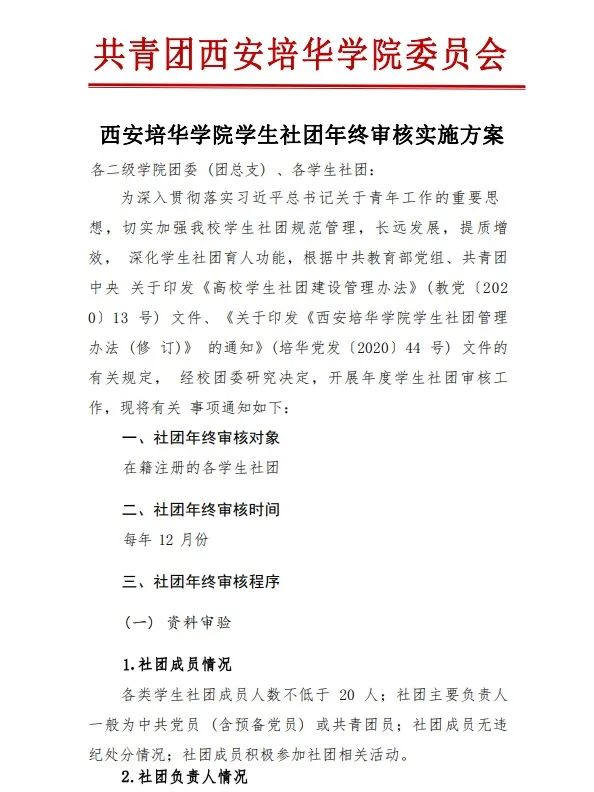 落实《高校学生社团建设管理办法》,加强西安培华学院社团整体发展,提高社团质量。