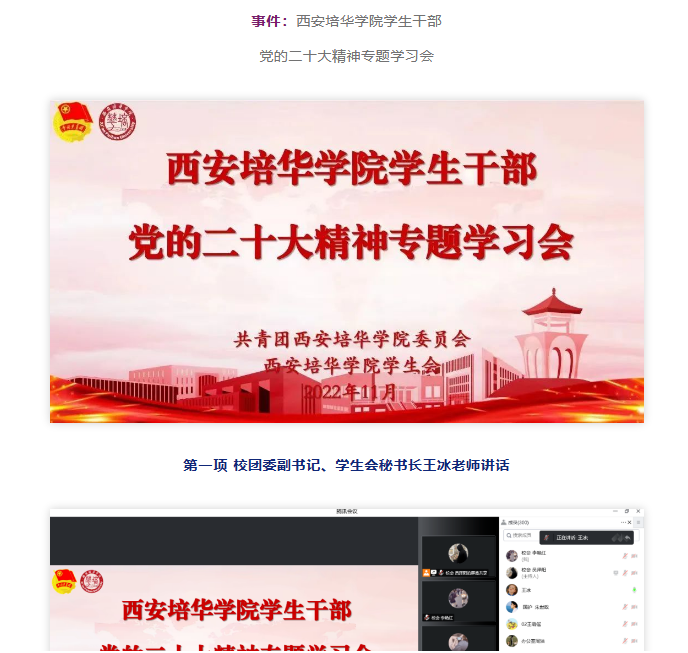 2022年西安培华学院“向党述职 向青年报告”基层团组织众评众议述职汇报大会顺利举行。