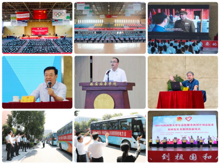 承办2022年陕西省大学生志愿服务西部计划及研究生支教团培训及出征仪式,陕西省委教育工委、共青团陕西省委、省民政厅、财政厅及我校等单位主要负责同志出席大会。我校遴选的31名西部计划志愿者也统一参加了2022年陕西省大学生志愿服务西部计划志愿者及研究生支教团培训班,开展学习,强化技能,投身基层,服务祖国发展建设。