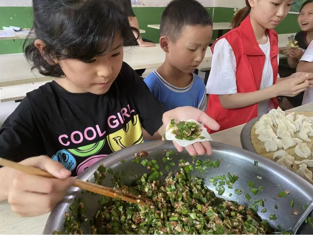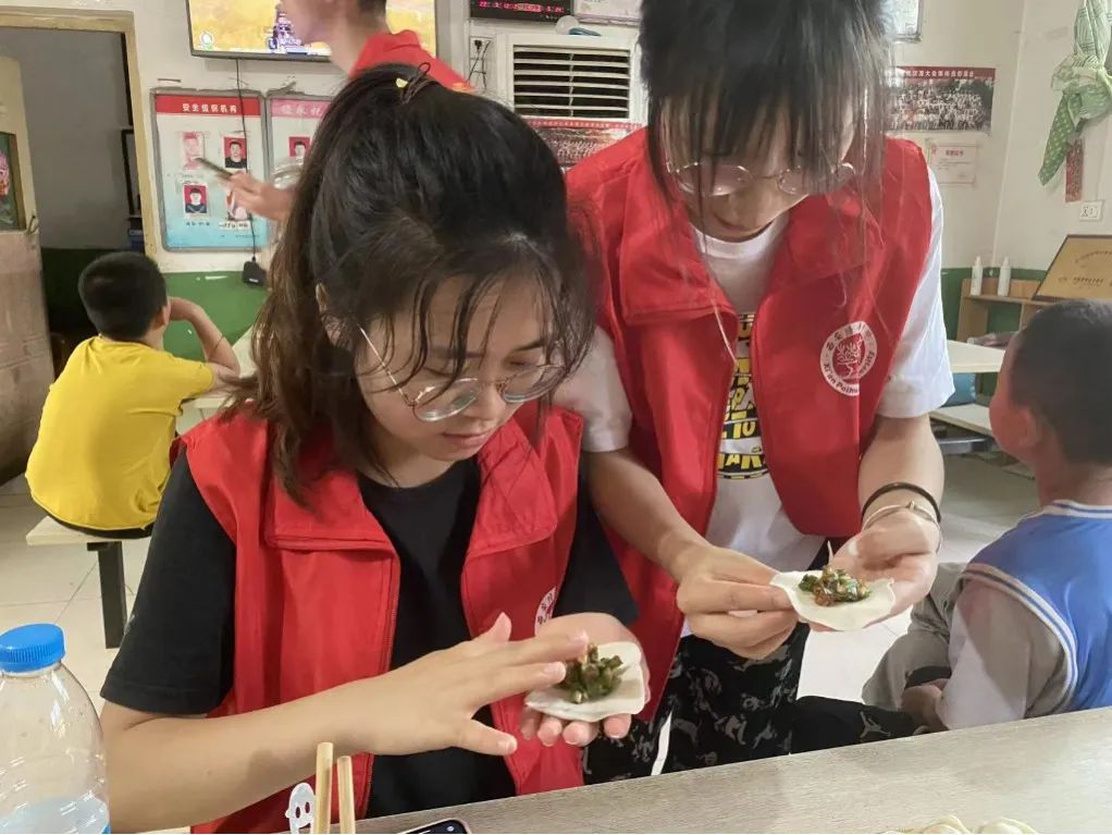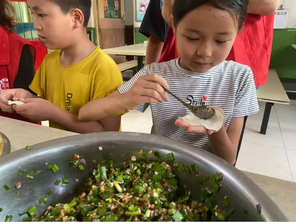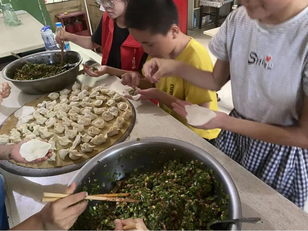 团队志愿者组织站点儿童开展包饺子活动,鼓励他们自己动手,包饺子的过程既锻炼了他们的动手能力,又提升了他们的获得感和幸福感。