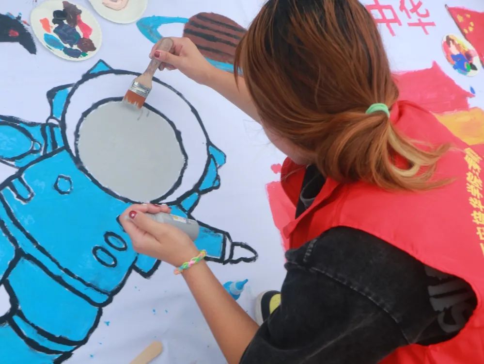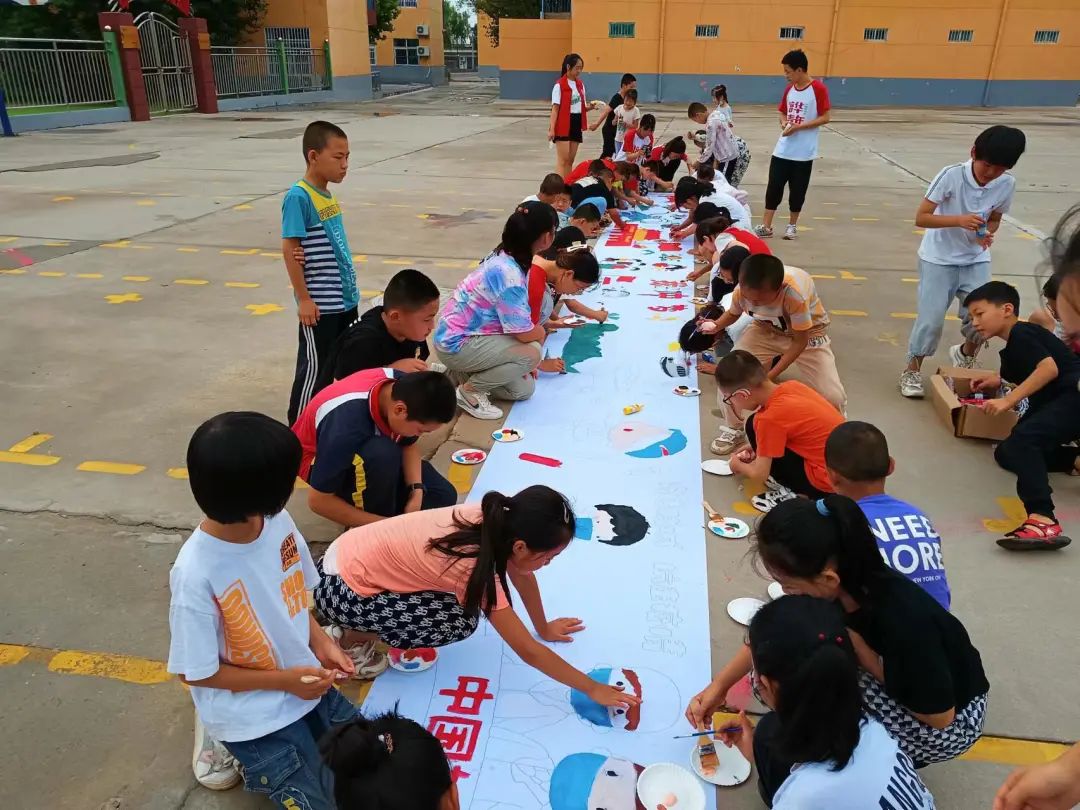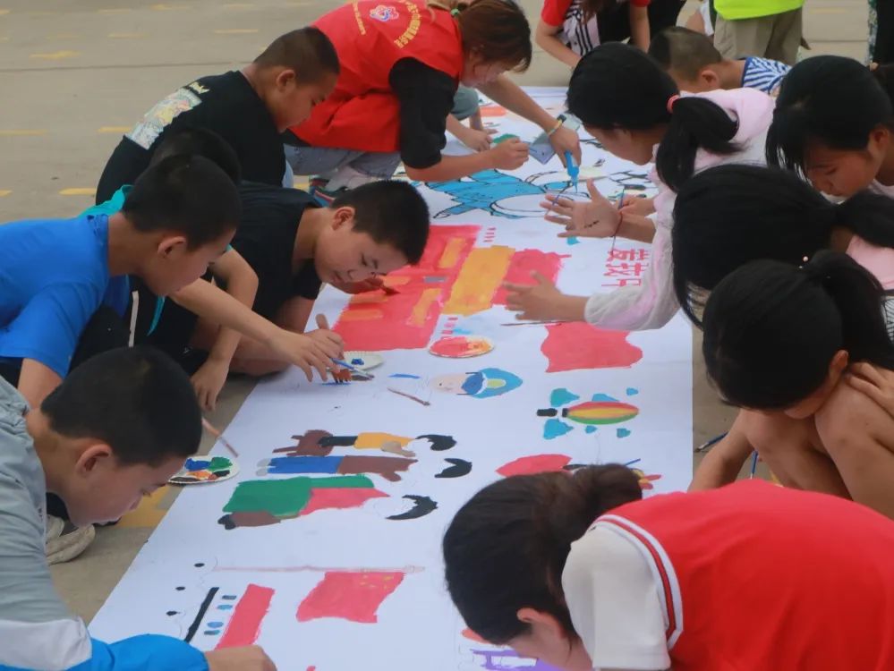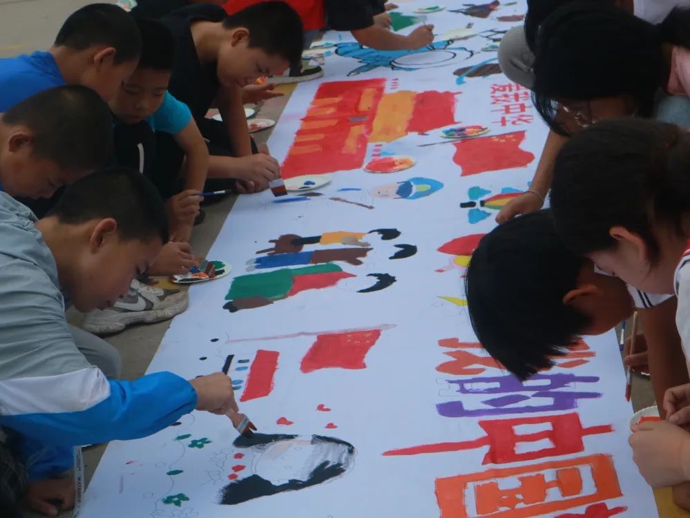 团队结合当下实际,特别策划“红领巾心向党”——“百米长卷”活动,四十多名孩子提起画笔挥毫泼墨,用画笔描绘出一幅色彩斑斓的画卷。