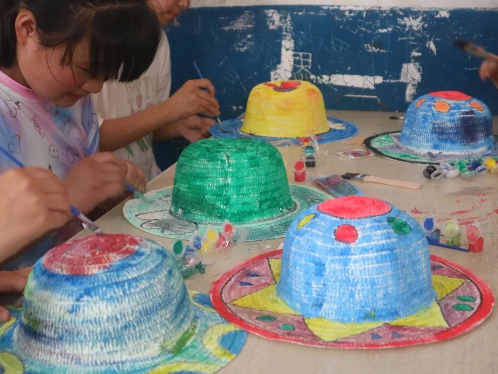 团队志愿者们利用课余时间开展绘画实践活动,将孩子们的绘画成果集中起来形成“文化墙”。