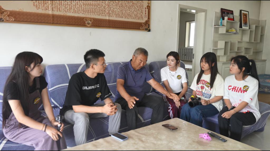 走进库布其,团队成员第一站就来到了库布其沙漠治理第一批民工联队队长高毛虎防风治沙的沙地中,三十年来,他们这一辈人积极鼓励引导广大农牧民通过植树造林、发展特色种植养殖项目,实现在治沙中致富、在致富中治沙。新时代的大学生正在用笔尖记录这片土地的巨大进步和卓越成就,用镜头为广大青年介绍沙漠地区的绿色可持续发展历程和治沙先进模范,传承“守望相助、百折不挠、科学创新、绿富同兴”的“库布其精神”。