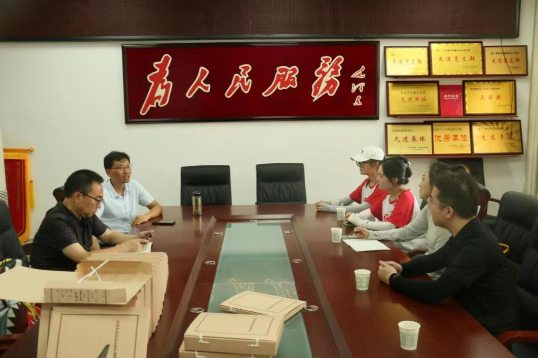图为西安培华学院学生与汉阴农业局负责人商谈