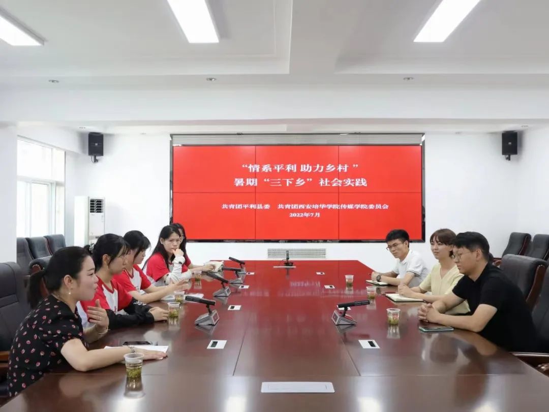 实践队员在活动期间走访多个相关单位。于7月8日下午与共青团平利县委展开了深入交流,在谈话中,传媒学院团委书记王雅璇提出,可以集合学校各个专业中优秀的学生,组成一支综合的专业志愿队,助力平利县高质量发展。共青团平利县委书记刘凡也表示,希望与共青团西安培华学院形成长期对接的合作关系,加强平利与高校的深层次合作,并全面支持学生暑期“三下乡”活动的开展,共同推动平利更快更好的发展。