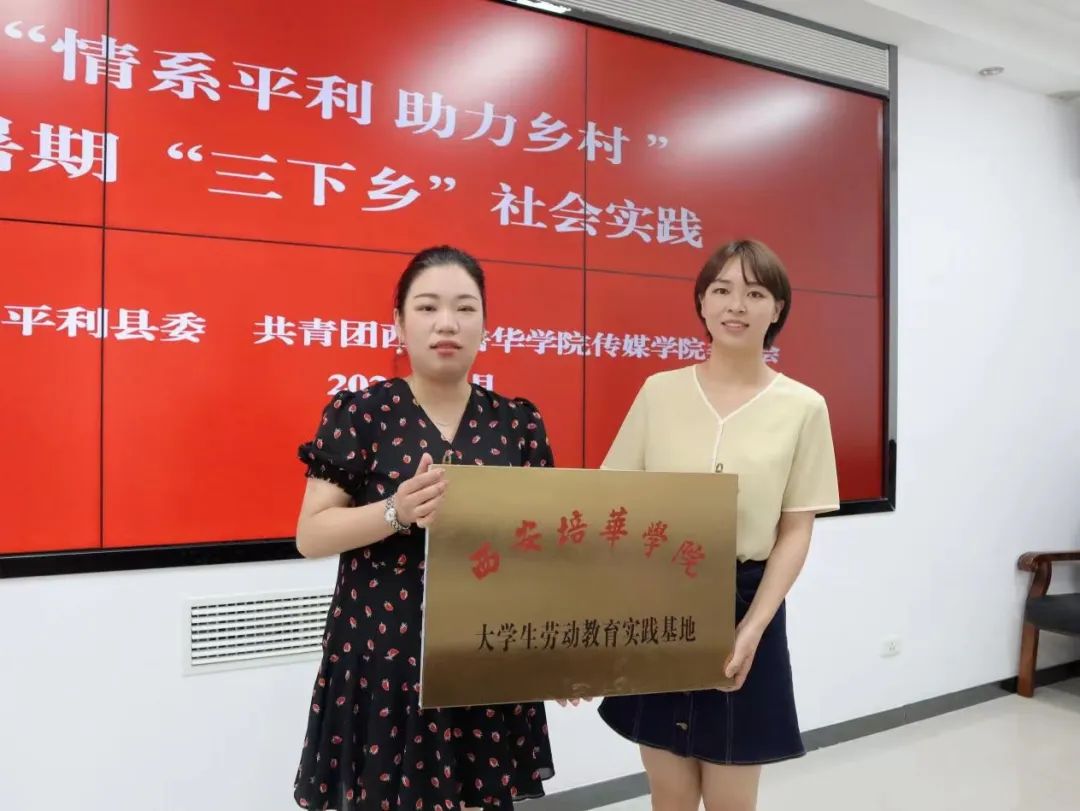 (传媒学院团委书记王雅璇与共青团平利县委书记刘凡进行挂牌仪式 付兴琦摄)