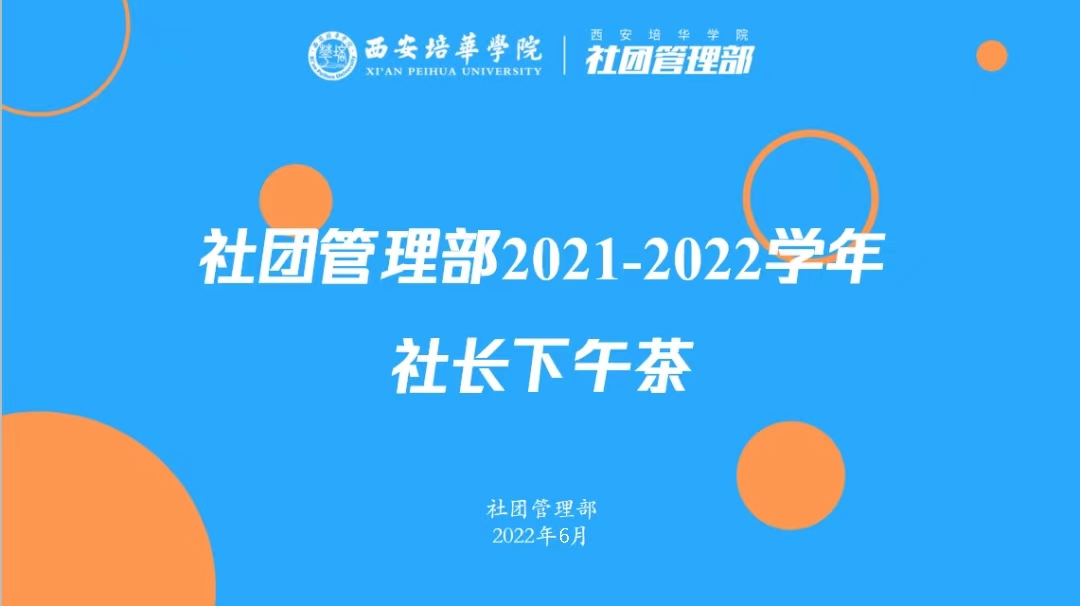 临近期末,为了增强社团管理部和各社团社长工作间的协调性,为社团提供充分交流的平台,社团管理部决定于 2022 624日下午 1600- 1730 在恒友四楼报告厅举行第三期主题为 “ 忆往昔携手前行、看今朝砥砺奋进、谋发展筑梦远航 ”社长下午茶活动。