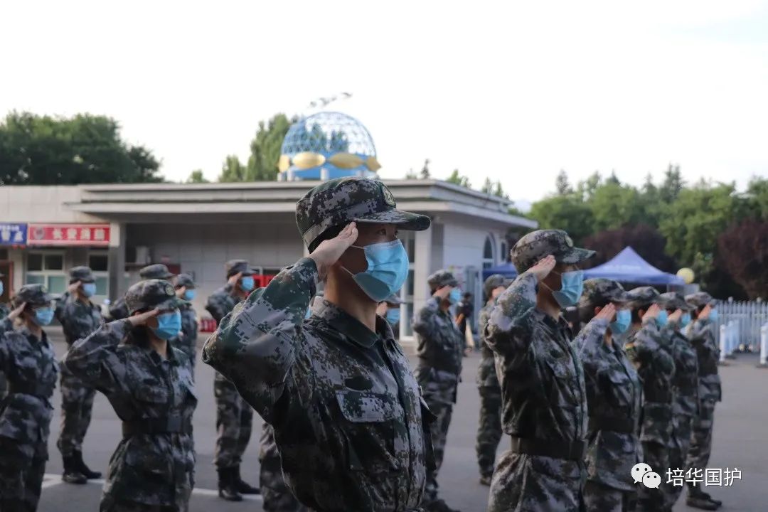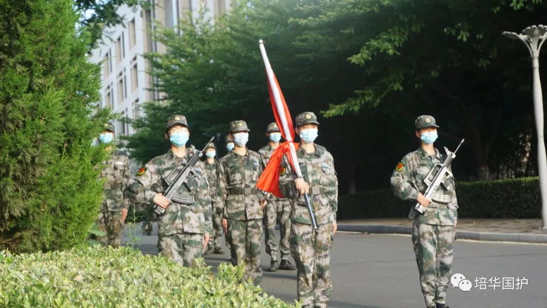 清晨的校园带着些许朦胧,初升的太阳唤醒了沉寂的校园。手中的这面旗也被照耀得更加灿烂、夺目,而队员们身着绿色戎装,坚定的眼神、挺拔的身姿、不屈的信念,面对高温,无所畏惧、蓄势待发,共同迎接这个崭新的周一。