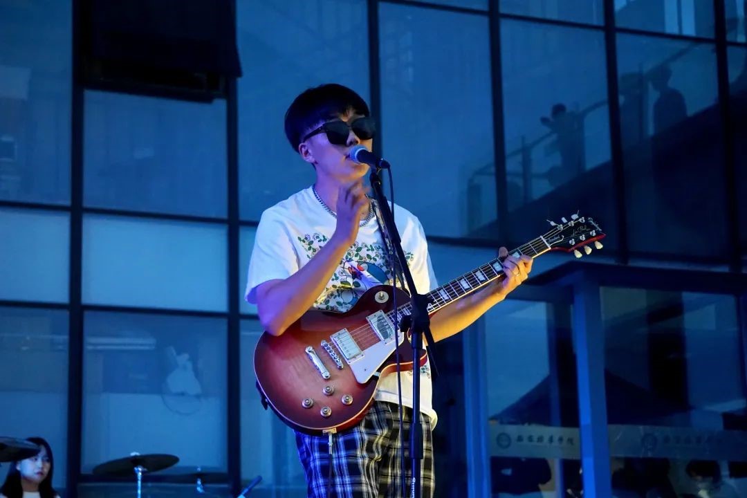 为积极推动我校学生社团文化健康蓬勃发展,展现我校学生的青春风采,丰富校园课余生活,让音乐走进校园,让艺术走进心灵,2022年5月30日由社团管理部主办,DM音乐工作室及乐土音悦吉他社承办的草坪音乐节在操场完美落幕。一块小小的舞台凝聚了各色光芒,火热的气氛层层交叠,这个夏天,我们聆听青春的声音!