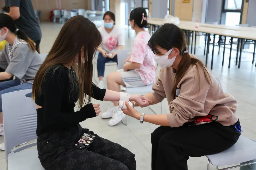 示范结束后让学生们进行了互助模拟包扎训练以及当堂展示,通过学习加实践的方式增强志愿者动手能力,在训练结束谈感受时西安培华学院青年志愿者联合会赵伟龄同学讲到这次的培训让志愿者知道了很多关于急救包扎的相关知识,老师们通过详细的实际操作之后,我们在实操中学会了包扎,最关键让感受到珍爱生命、敬畏生命、呵护生命的另一种境界,让我们更自信的面对防灾减灾救灾,从害怕面对灾害,到认识灾害,积极应对灾害转变。
