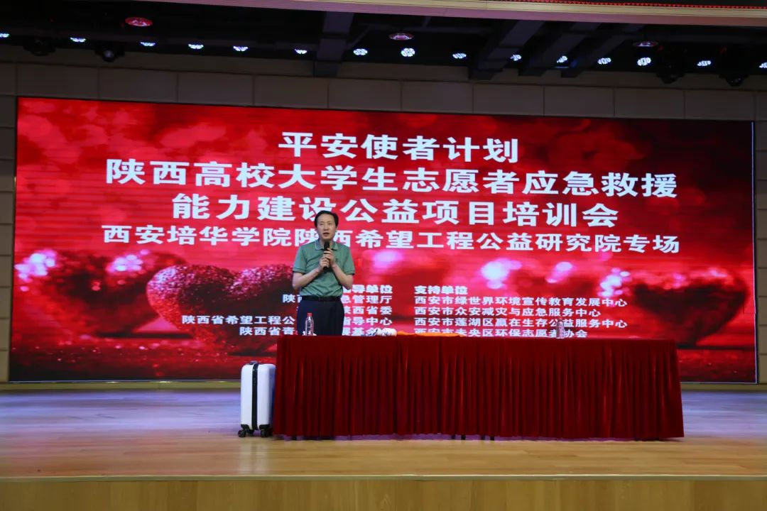为了增强大学生应急救灾经验,提高大学生自救互救能力,在4月26日,西安培华学院青年志愿者联合会在恒友楼组织开展了“平安使者计划 · 陕西高校大学生志愿者应急救援能力建设公益项目培训会”培华专场活动。