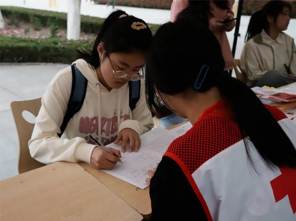 无偿献血是一件光荣的事,也是我们学校每年都会举行的活动,这次我有幸作为志愿者参与,看到一个又一个同学加入,看到大家克服恐惧奉献爱心。这真的让我感受到了奉献的精神,感受到了这次活动的意义。