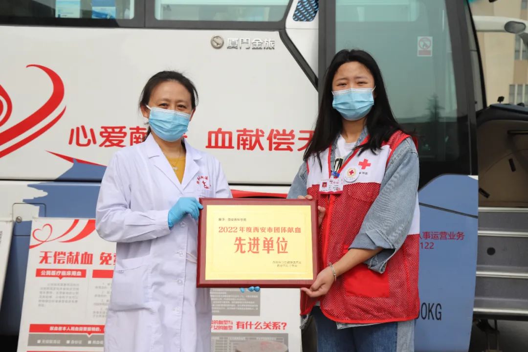 2023年4月,西安市卫生健康委员会 西安市红十字会联合授予西安培华学院2022年度西安市团体献血先进单位。这份殊荣属于每一个培华人,他们献出的每一袋血液都是爱的付出,点亮无数生命希望,展现出培华人的奉献精神。