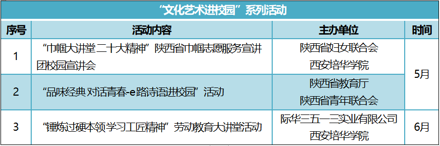 西安培华学院“校园之春”文化艺术节连续多年开展举办,已成为校园文化传播的重要途径和大学生思政教育的有效载体,是校园文化活动的重要组成部分。学校广泛动员,积极宣传,鼓励和引导学生积极参与,在校园之春的文化庆典上,展示耀眼才华、释放无限魅力。