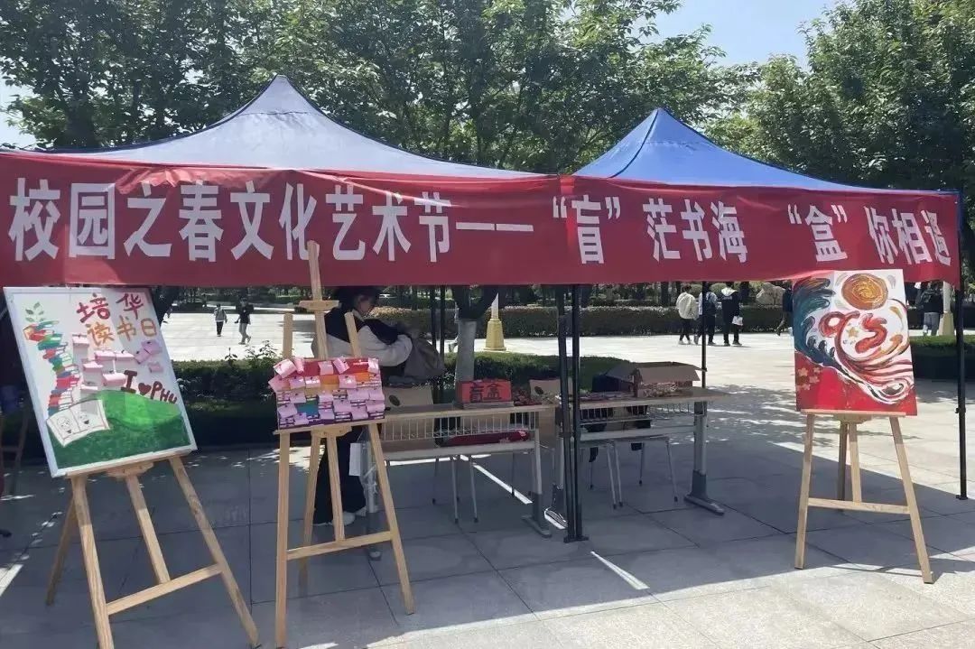 综合楼西广场同时还有“以书换书”图书漂流活动、四书五经之阅读盲盒活动、书签绘画活动、袅袅书香展示活动、我最喜爱的一本书推荐等,丰富多彩的校园文化活动让来往师生驻足停留,助力青年学生树立正确的价值观,促进青年学生德智体美劳全面发展。