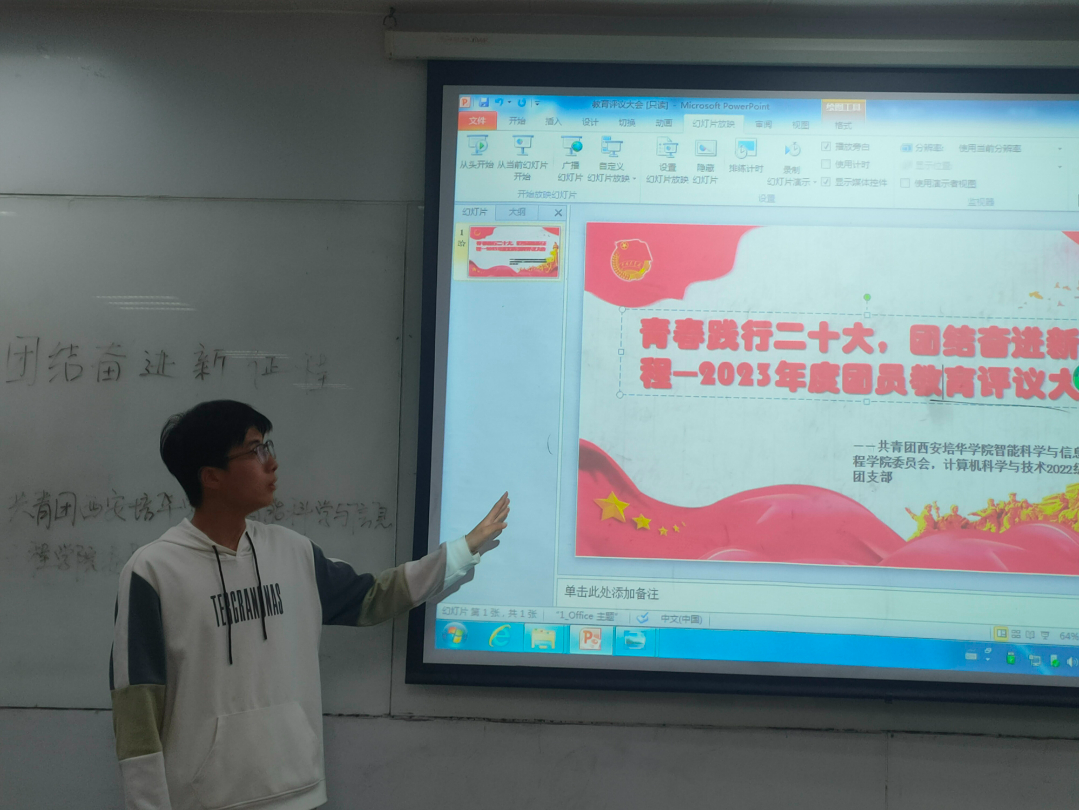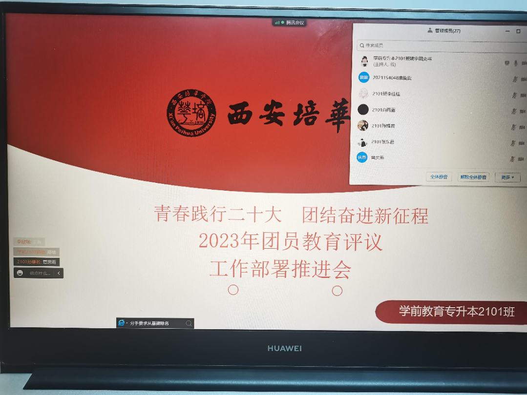 进一步加强团员队伍建设,提高团员的政治素养和思想认识,增强“四个意识”、做到“两个维护”,激励广大团员青年在学校各项工作中发挥主力军、生力军的作用。西安培华学院医学院团委于2023年4月19日在至善楼8504开展2023年团员教育评议工作部署会议。本次教育评议工作采取支部民主评议和学生发展量化评议相结合的方式开展,在103个团支部中针对评议层次为不合格、基本合格的团员情况,经过开展团委书记组织谈话,学生党员帮扶教育等方式,加强引导、帮助极少数团员向合格、优秀转变。本次团员教育评议中有400名共青团员脱颖而出,评议为“优秀共青团员”等次。通过本次评议工作,更全面地了解当代大学生团员的思想动态,实现爱国教育工作稳定有序发展。