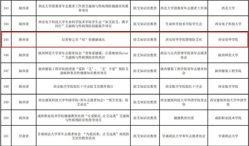 近日,中国性病艾滋病防治协会公布了《中国性病艾滋病防治协会高校防艾基金项目拟资助名单-防艾知识宣教类》。我校申报的《以青春之名“培”你健康成长》项目成功入选2023年度中国性病艾滋病防治协会高校防艾基金项目,并获批4000元经费资助。