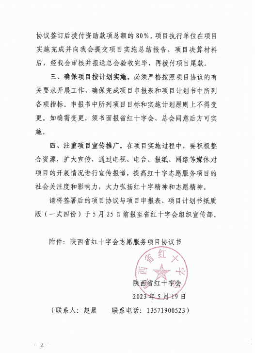 根据中国红十字会总会办公室《关于实施第十三期红十字志愿服务项目发展计划的通知》(中红办字[2023]6号),我校红十字会学生分会积极开展申报工作,经学校和陕西省红十字会推荐,相关领域专家学者评审,我校申报的《扬急救之帆,为生命护航》项目从全国各省市众多项目中脱颖而出,被确定为第十三期志愿服务项目发展计划30 个重点培育项目之一,并获得总会1万元项目经费资助,这也是红十字会学生分会继2020年《阳光成长计划——博爱童行》项目入选“2020年红十字青少年社会实践项目”后的又一突破。